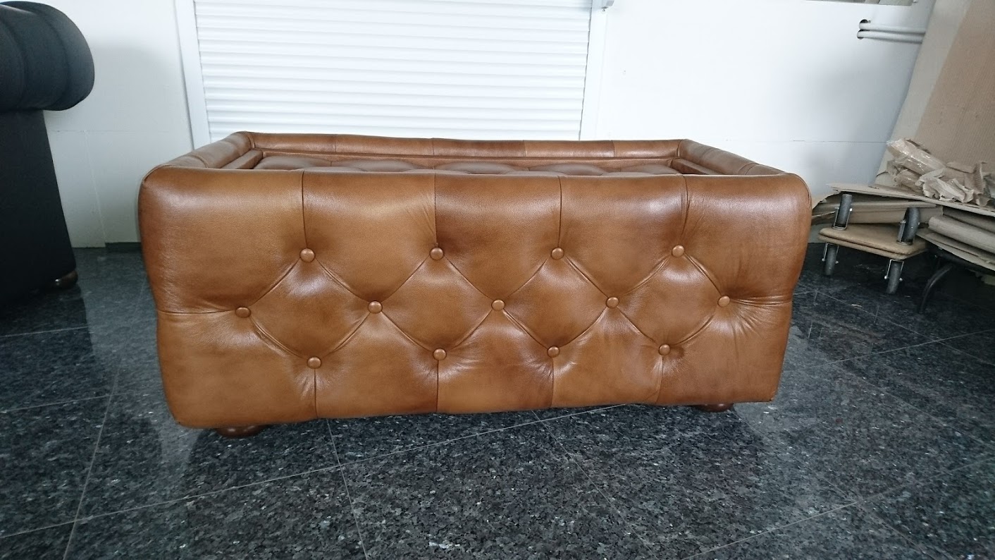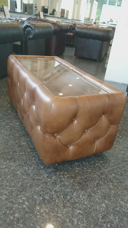 Chesterfield Tisch mit Glassplatte Antikgold (S12)