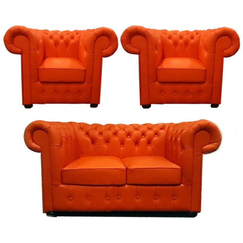 Chesterfield Klassik leder Sitzgarnitur 2+1+1 Orange (K6)