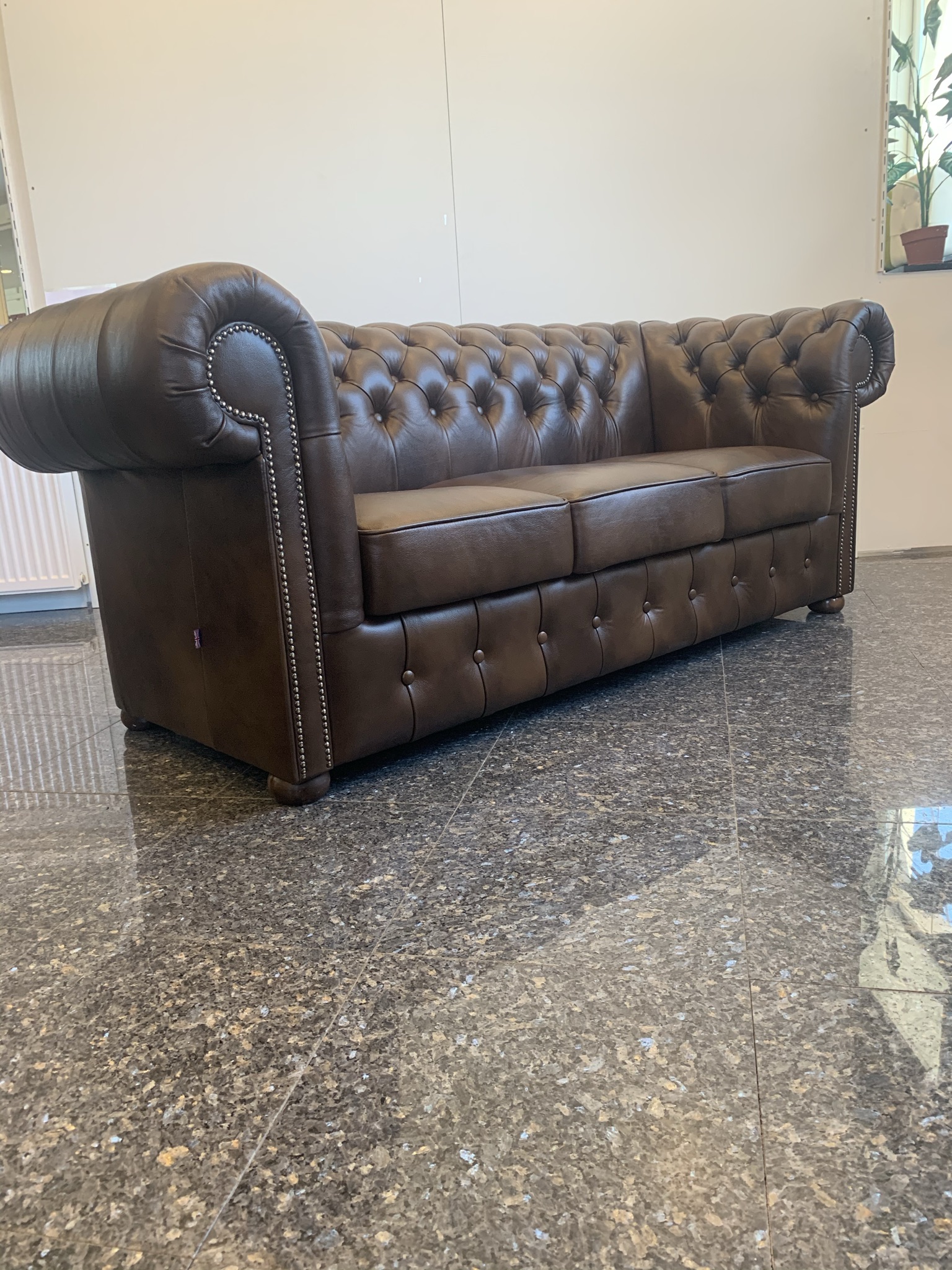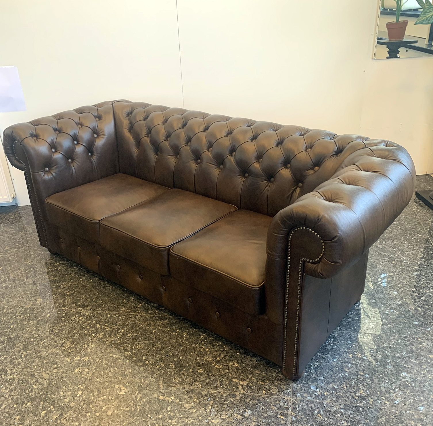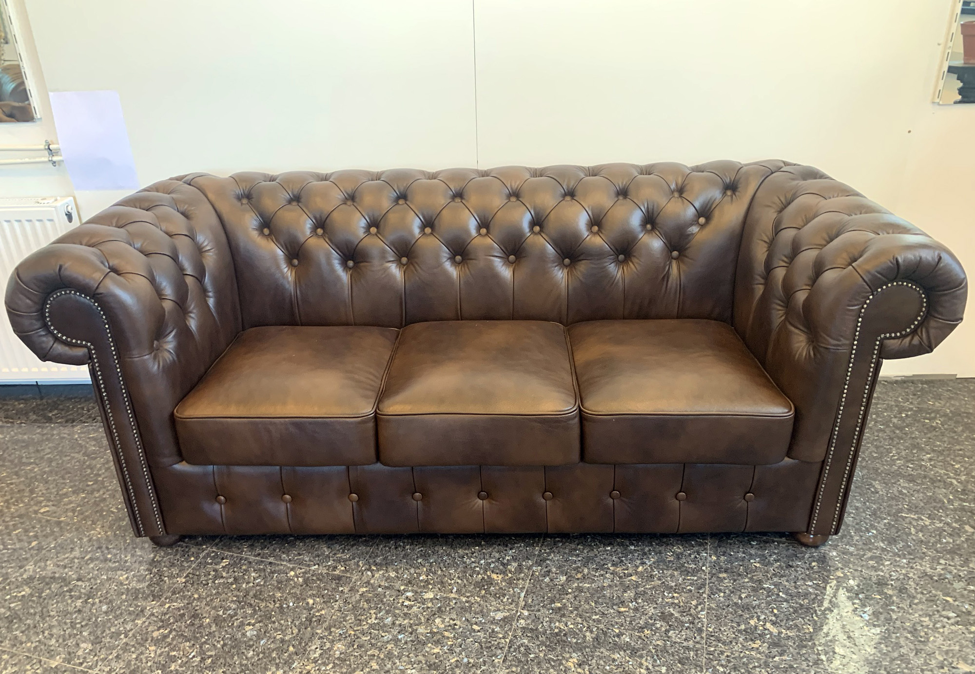 Chesterfield Classic 3-Sitzer Ledersofa Antik mittelbraun(A5M)