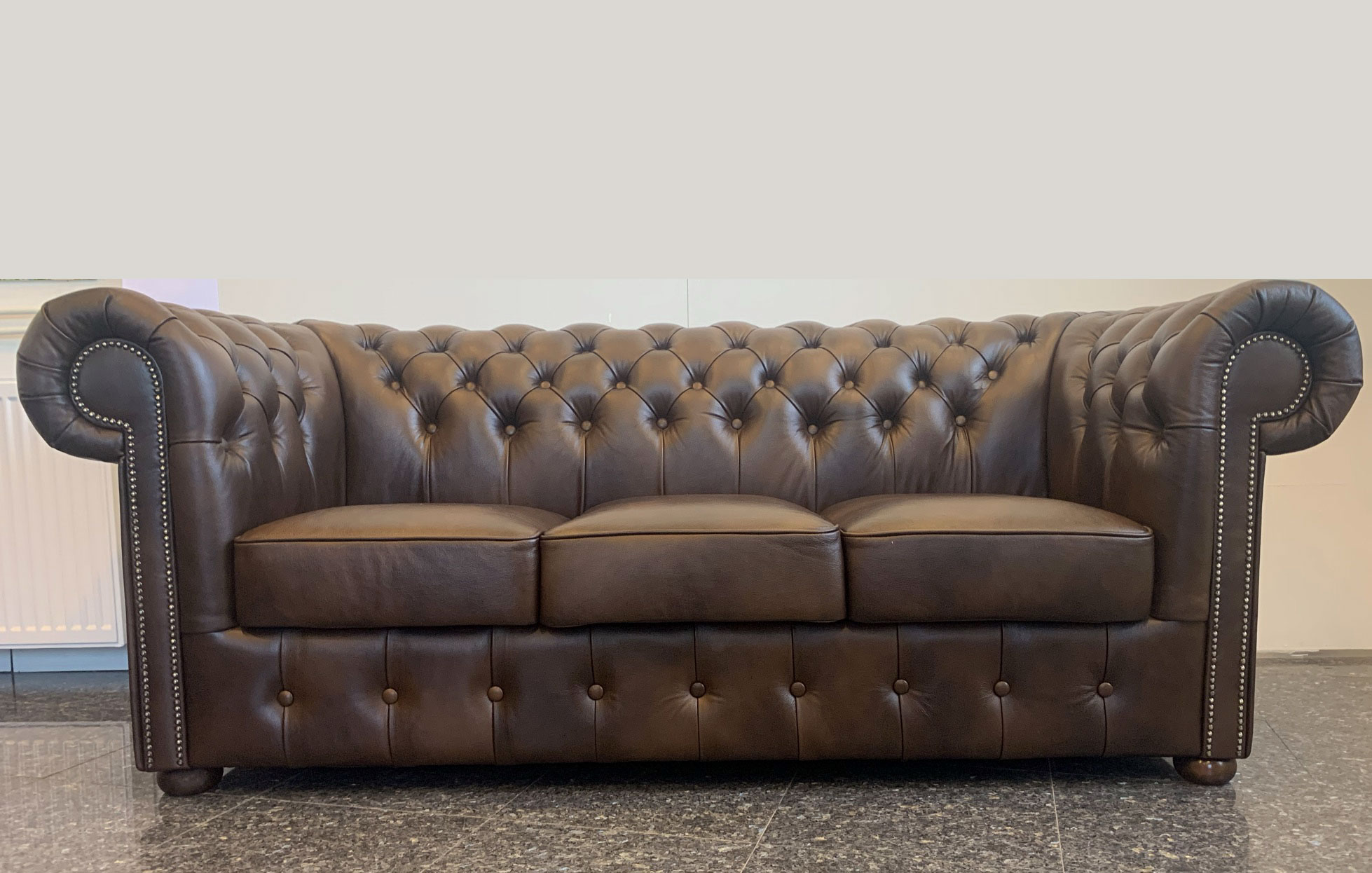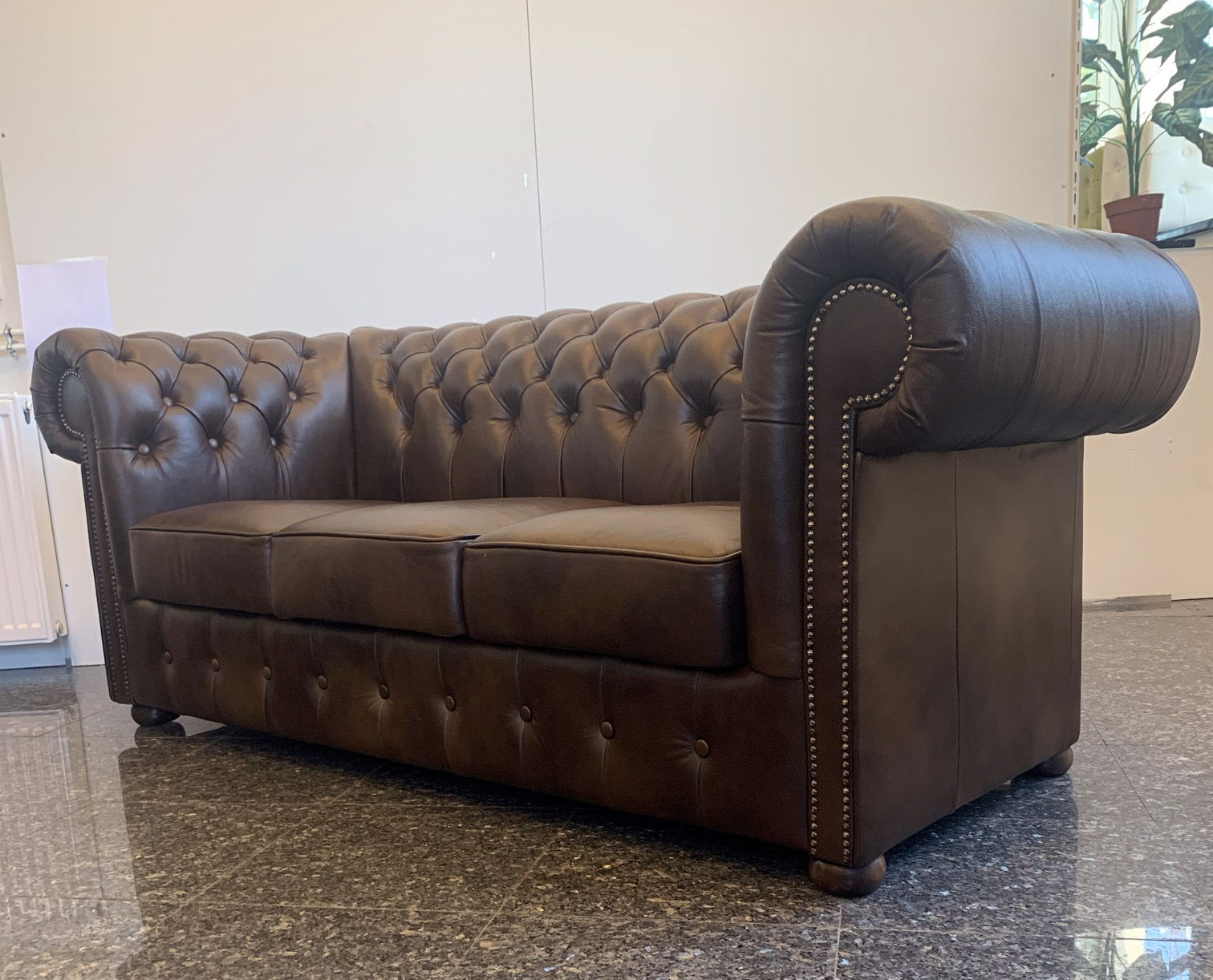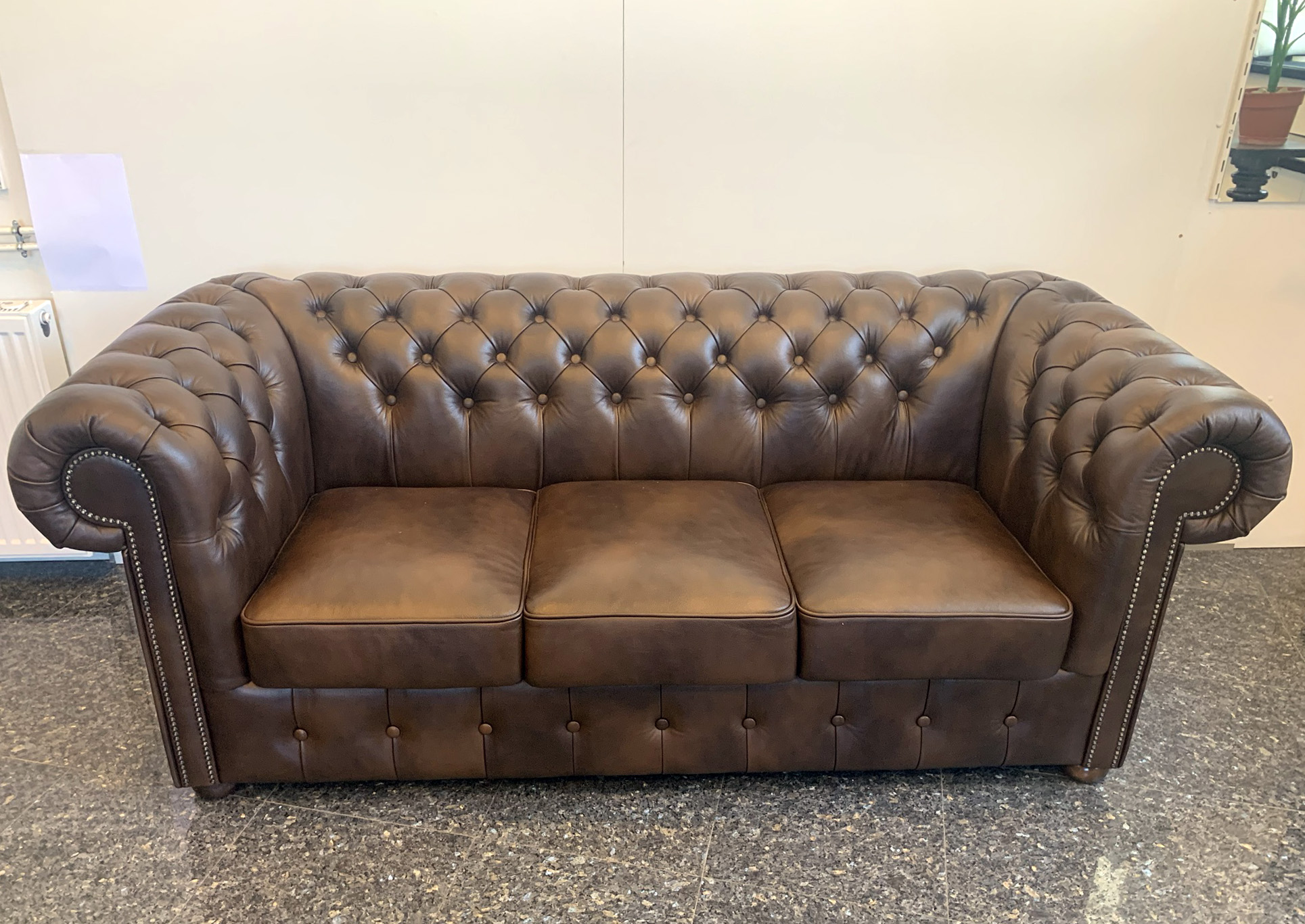 Chesterfield Classic 3-Sitzer Ledersofa Antik mittelbraun(A5M)