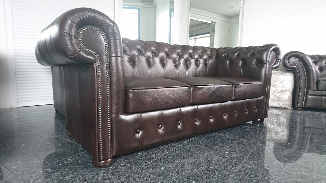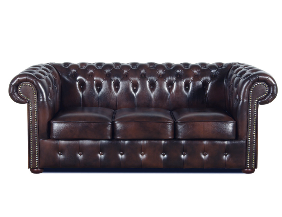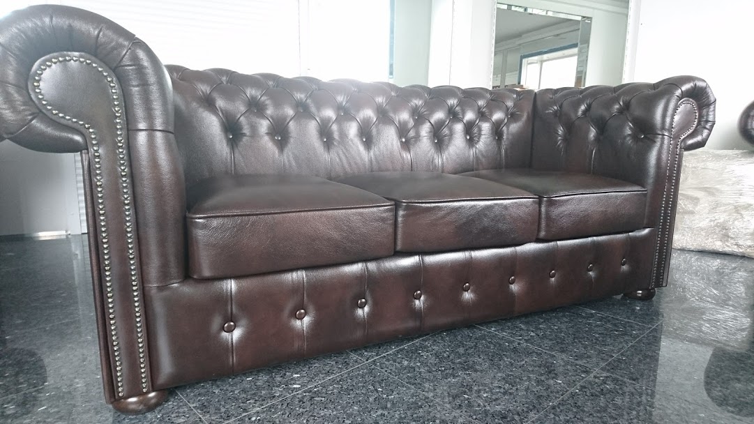 Chesterfield Classic 3-Sitzer Ledersofa Antikbraun (A5)