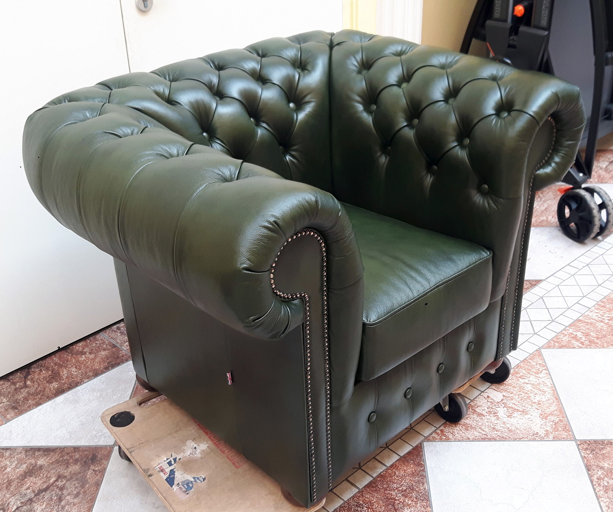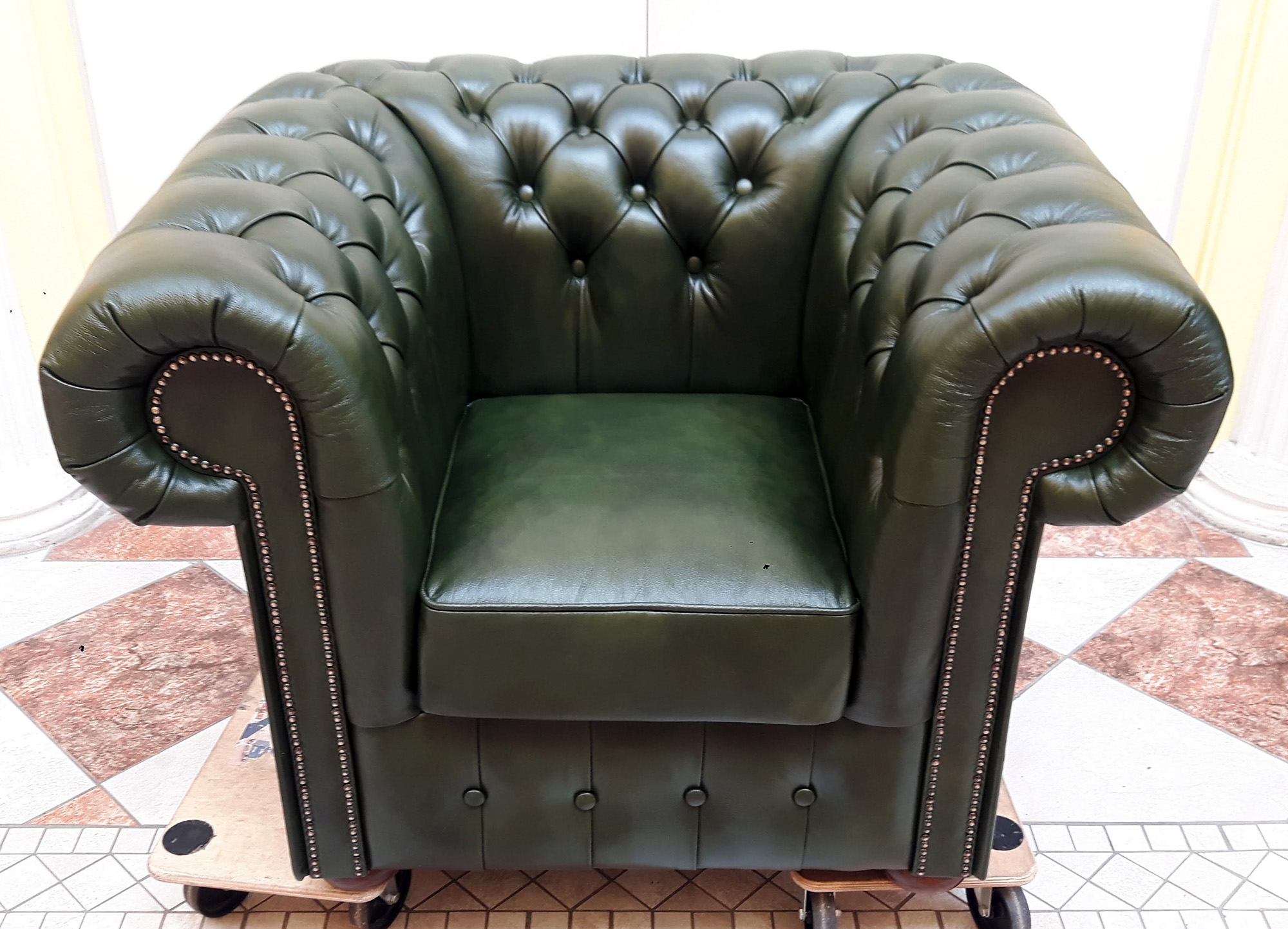 Chesterfield Classic Ledersessel, Antikgrün (A8)