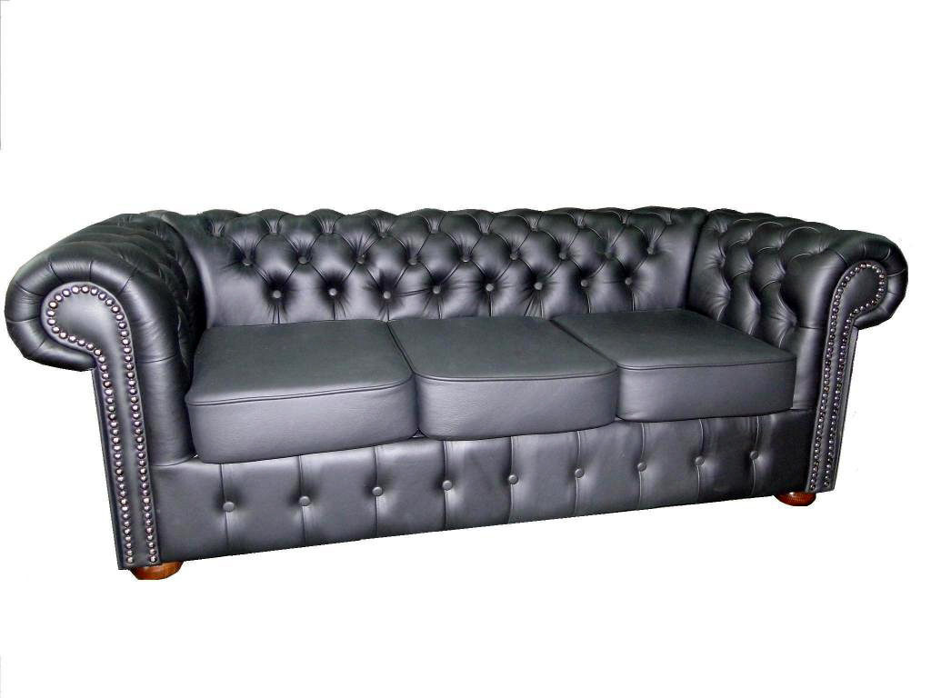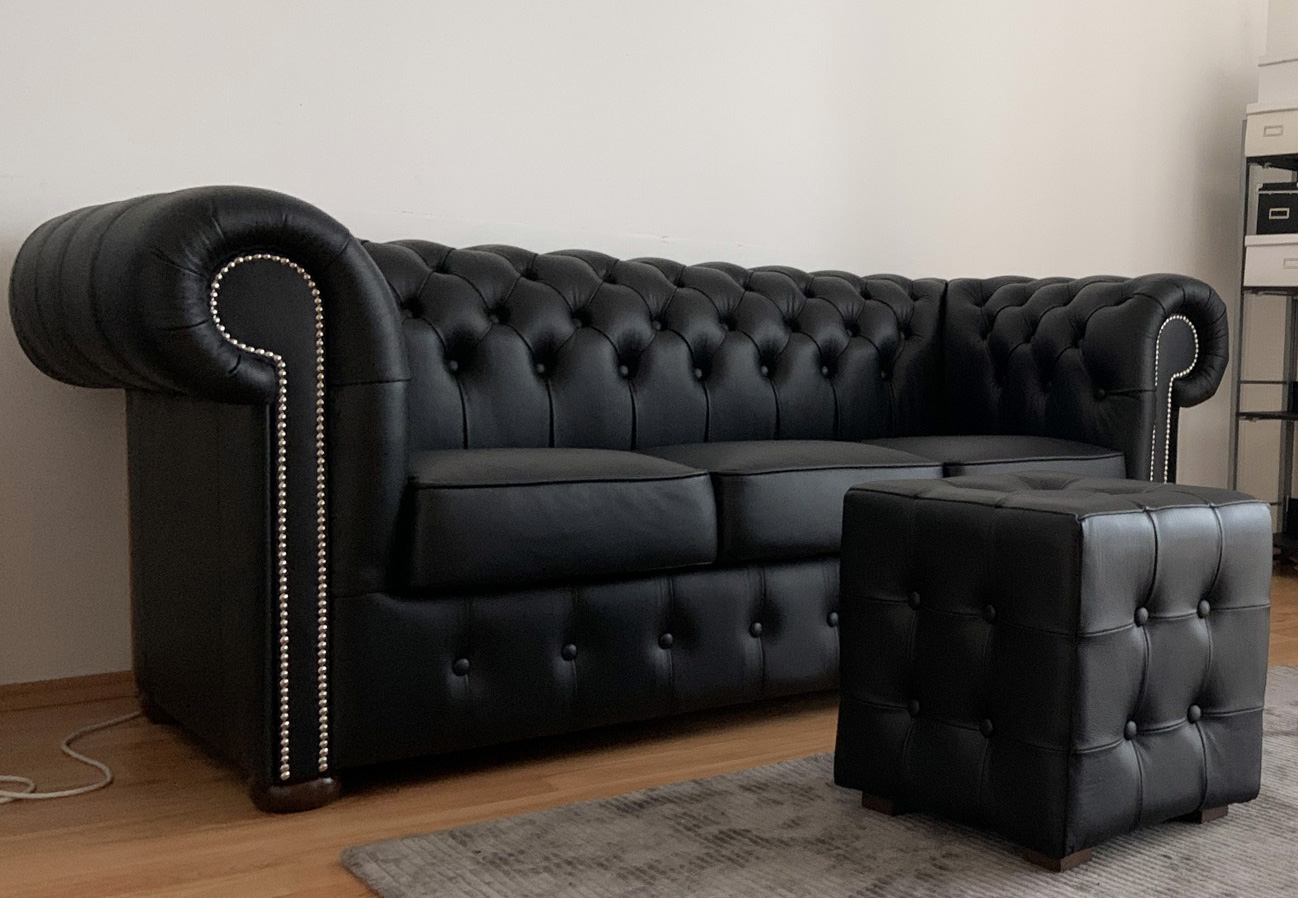 Chesterfield Classic 3-Sitzer Ledersofa schwarz (K70)
