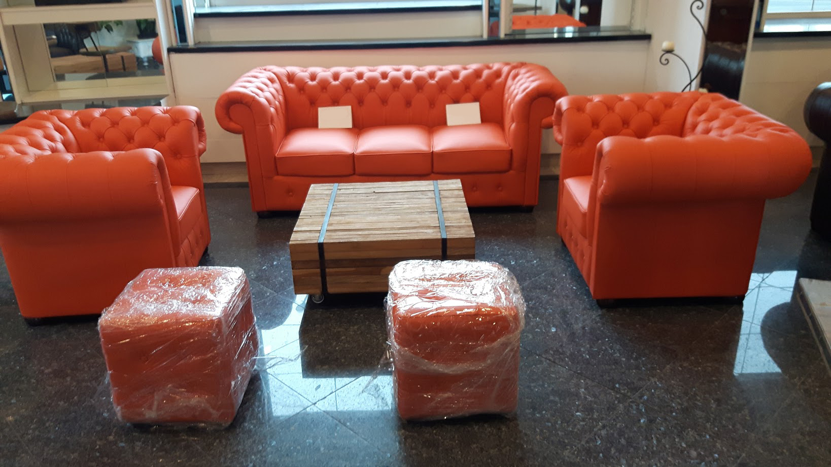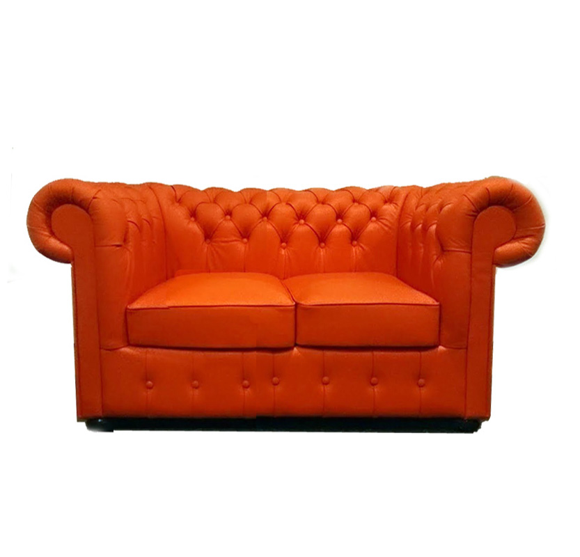 Chesterfield XL Classic 2-Sitzer Ledersofa Orange (K6)