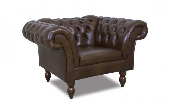 Chesterfield Diva Ledersessel, Antikbraun A5.