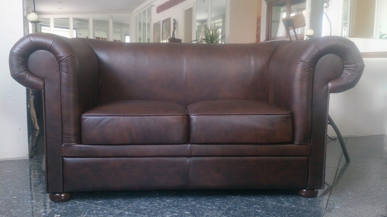 Chesterfield London 2-Sitzer Ledersofa, Antikbraun (A5).