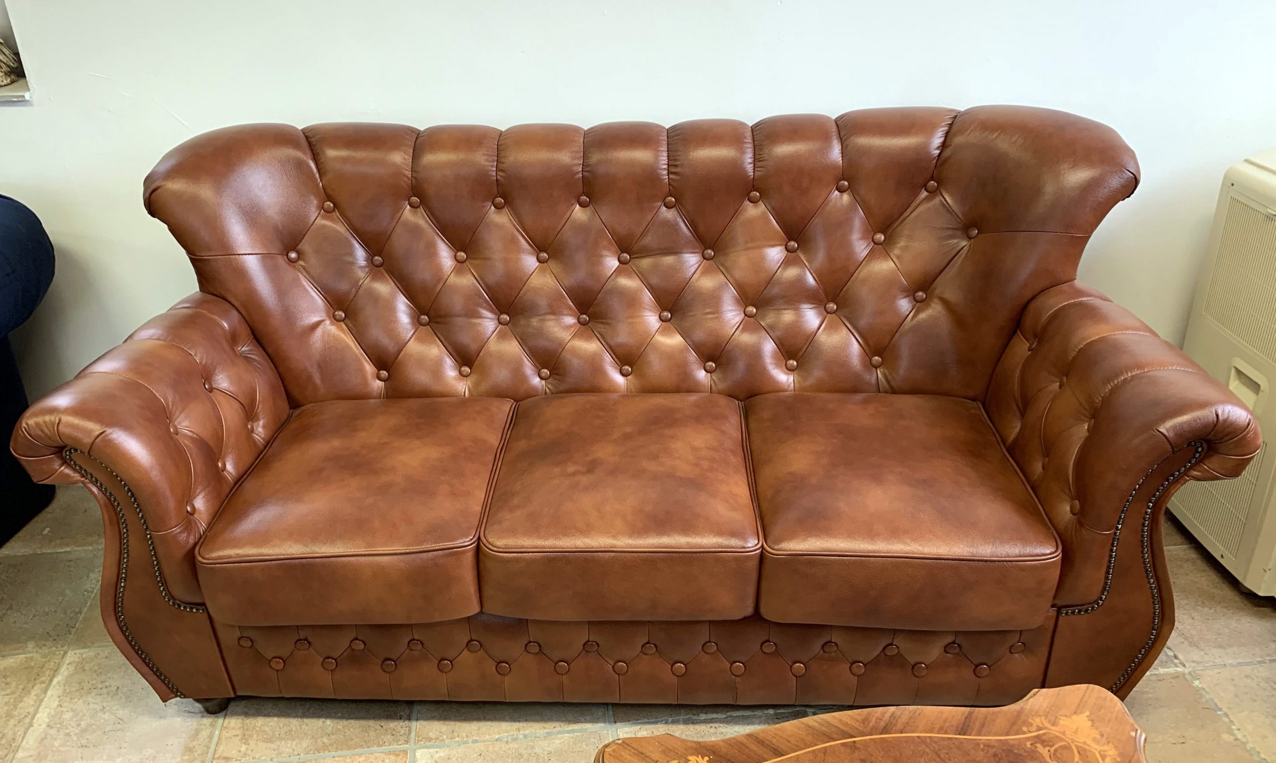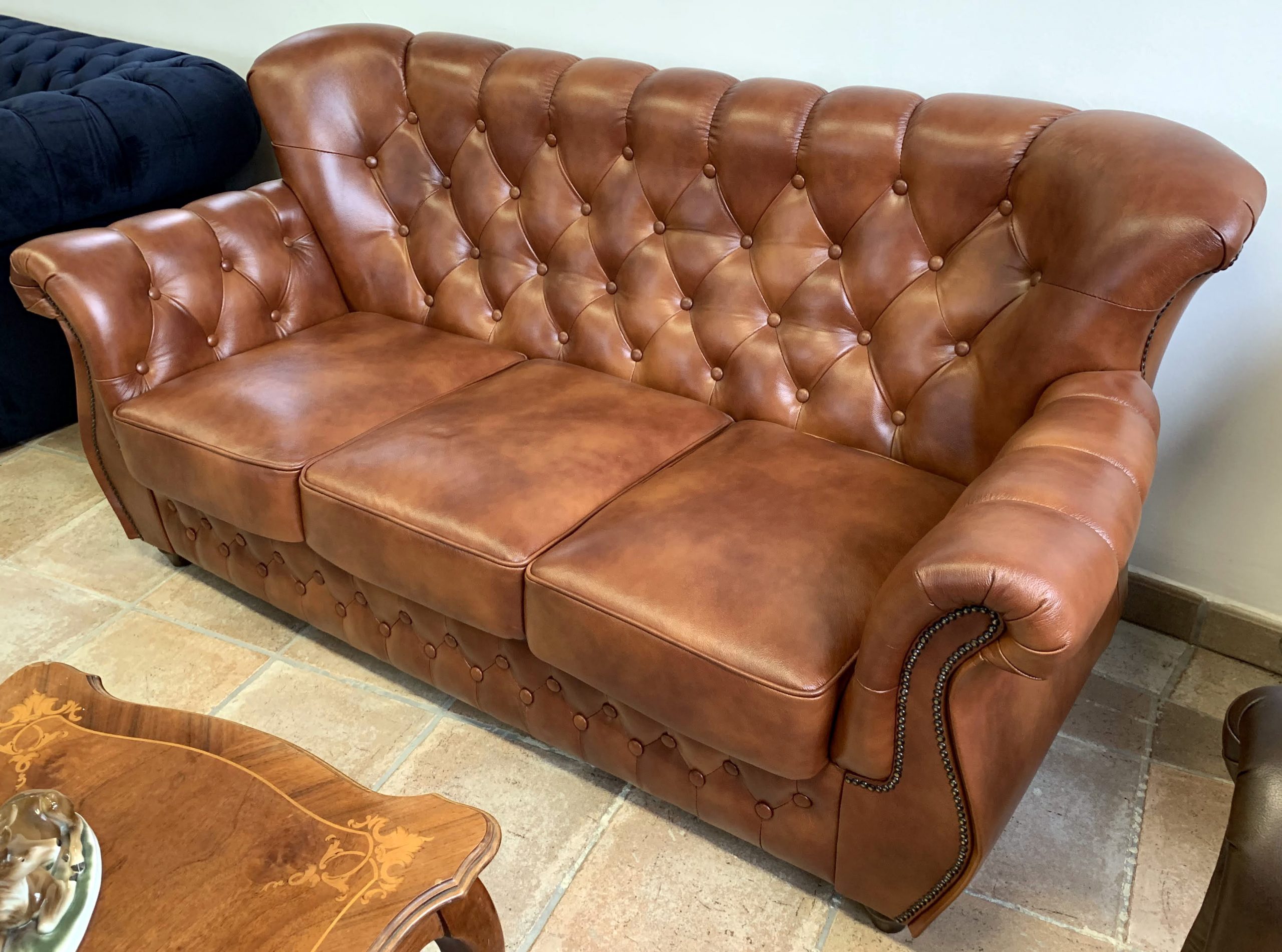 Chesterfield Monk 3-Sitzer Ledersofa Antikgold (C12)