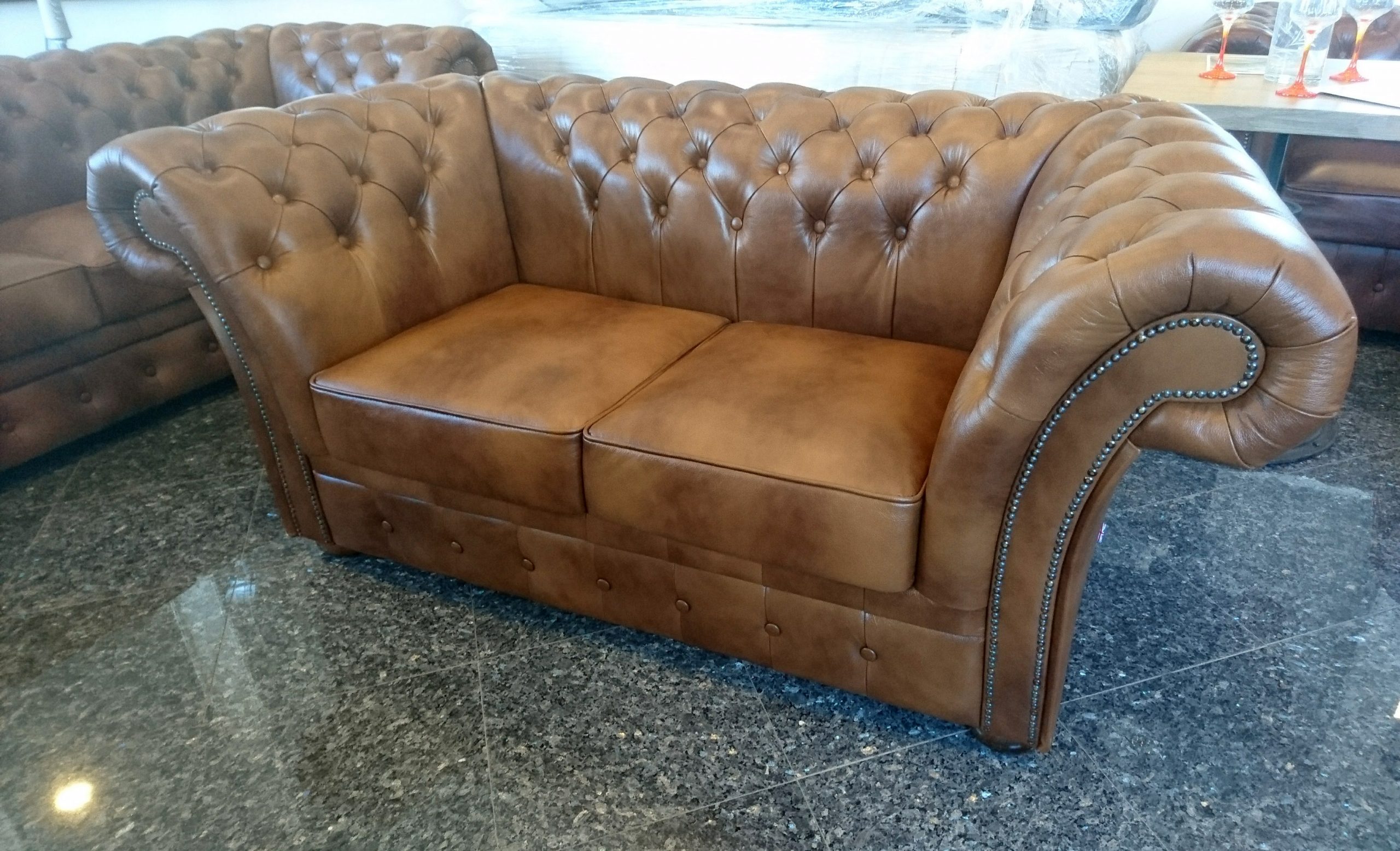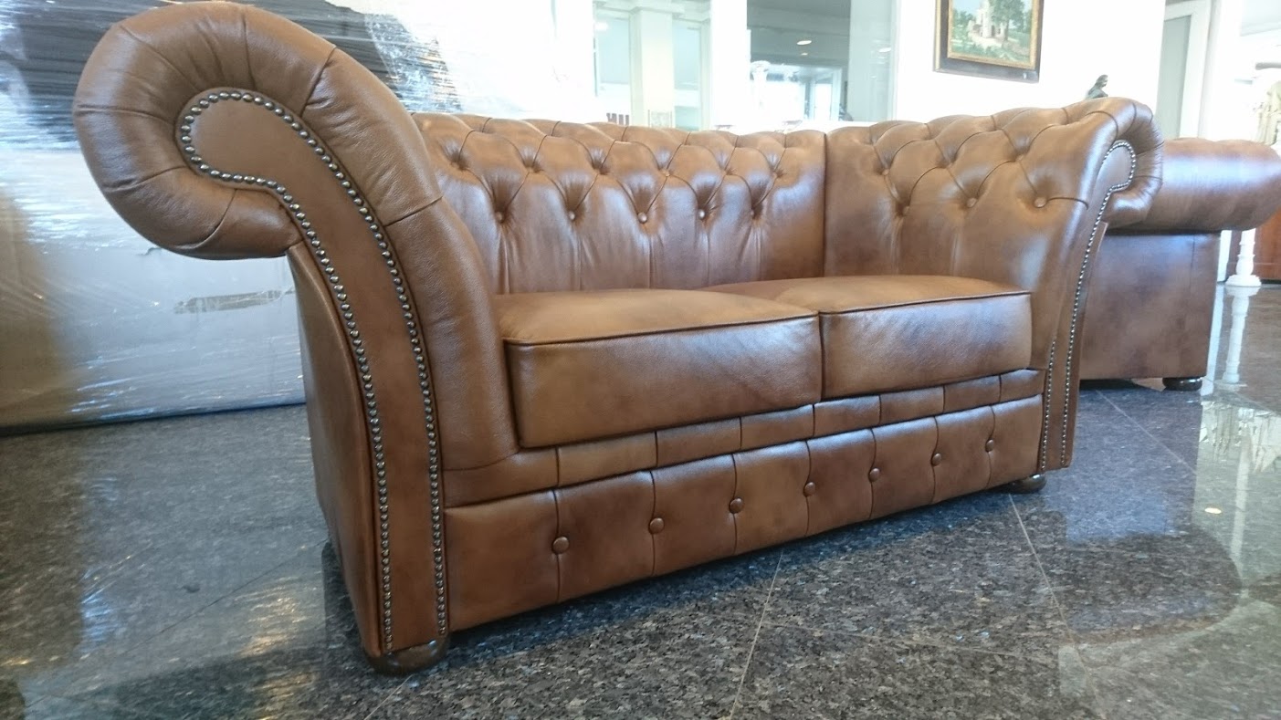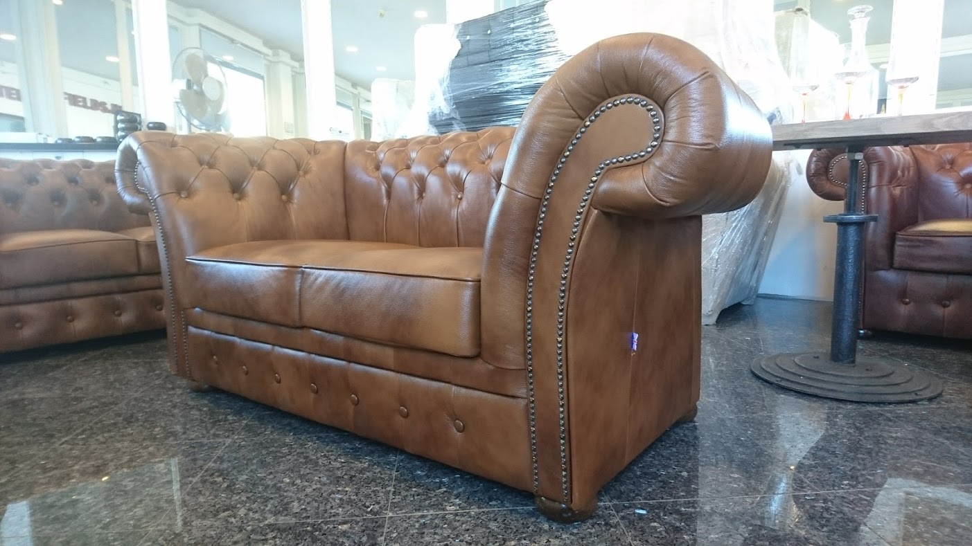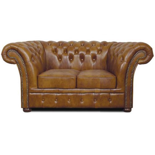 Chesterfield Windchester 2-Sitzer Ledersofa,Antikgold (S12).