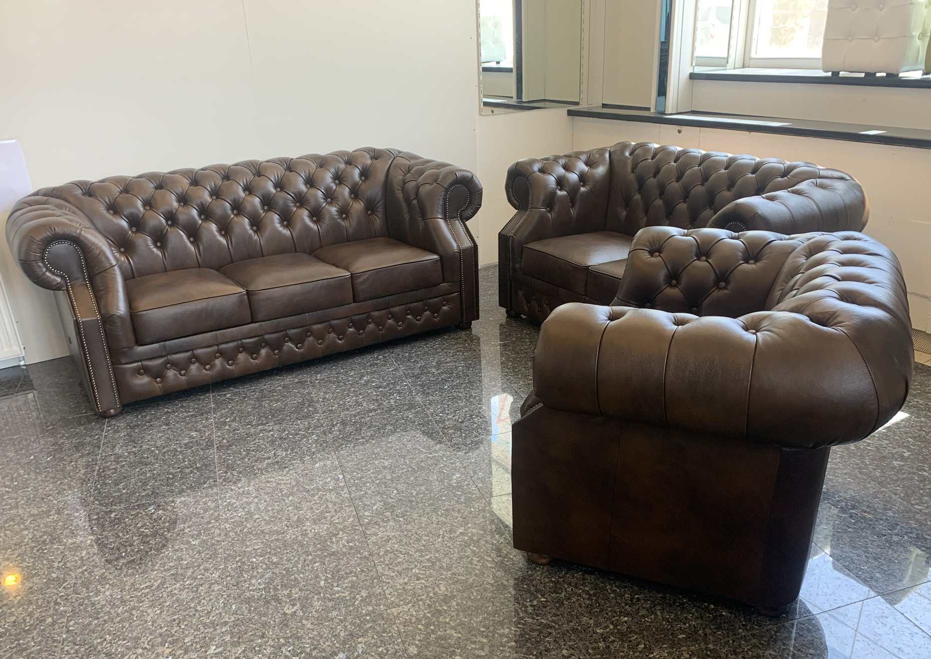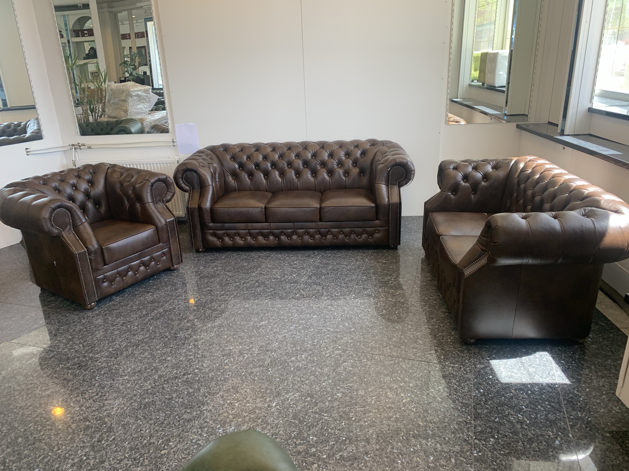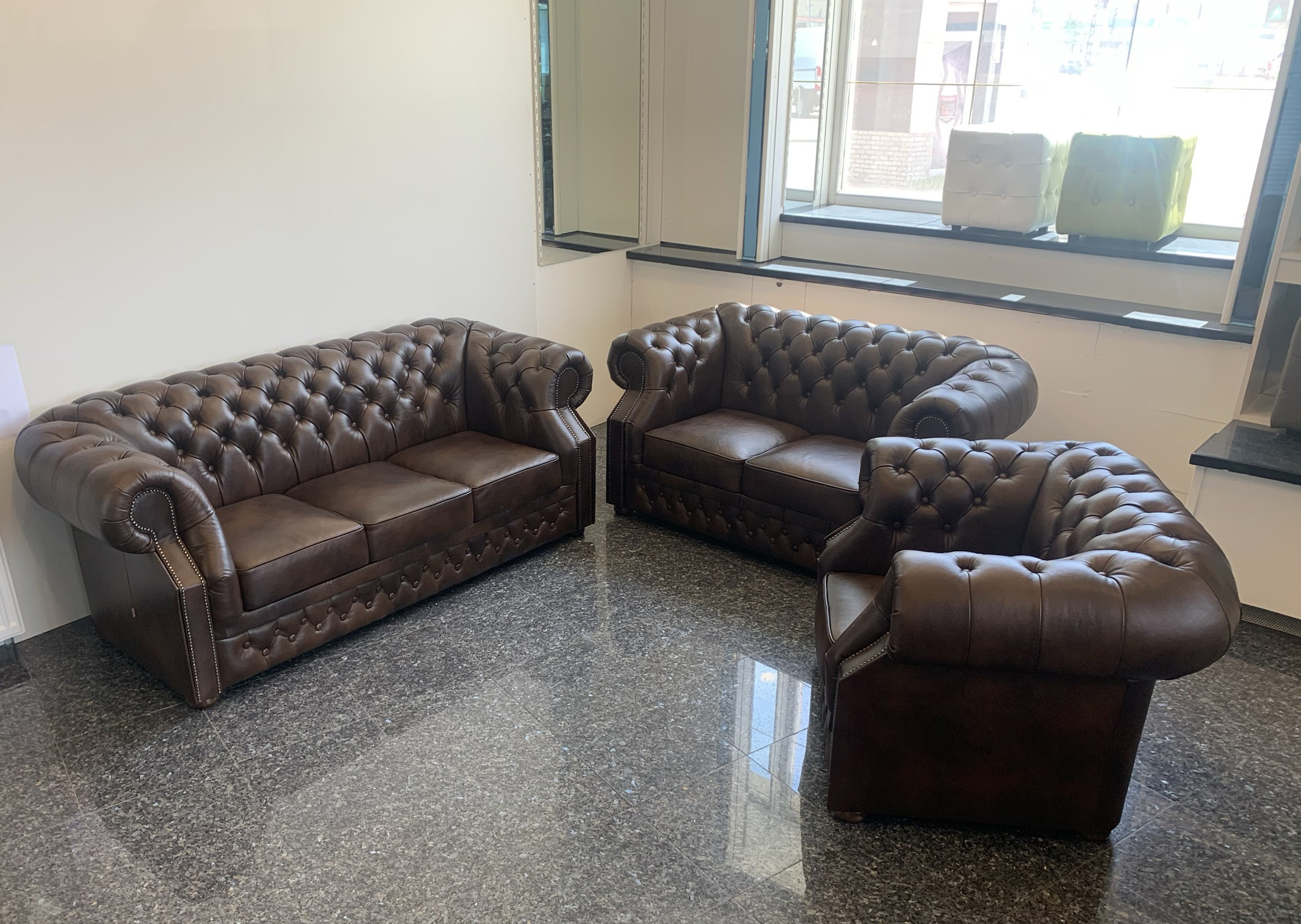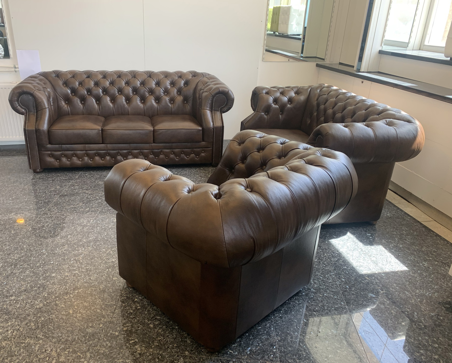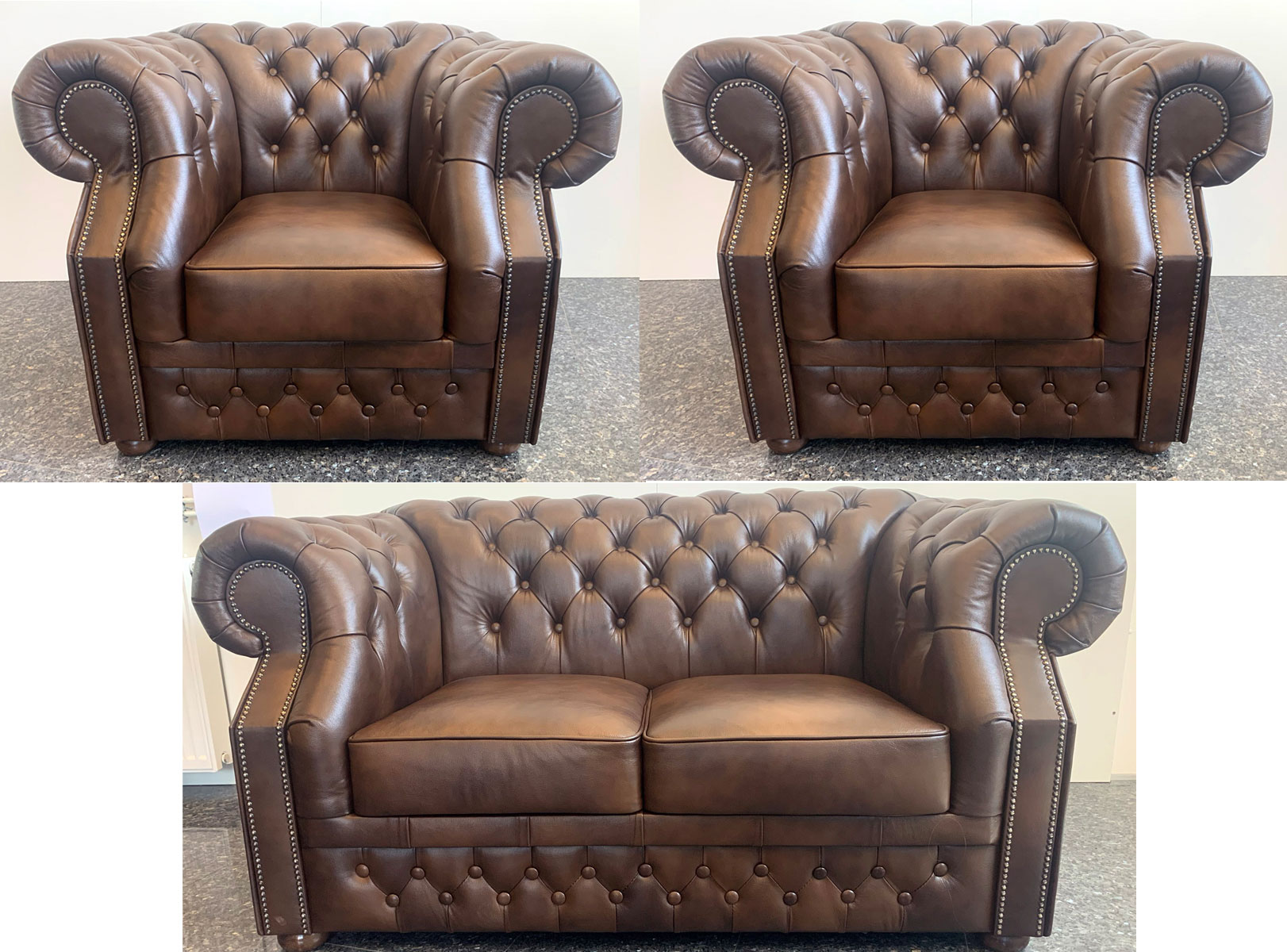 Windsor 211 Antik MIttelbraun Chesterfield Garnitur (A5M)