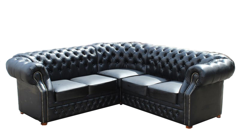 Chesterfield Windsor leder Ecksofa 2+2 (220×220/240×240) Schwarz (K70)