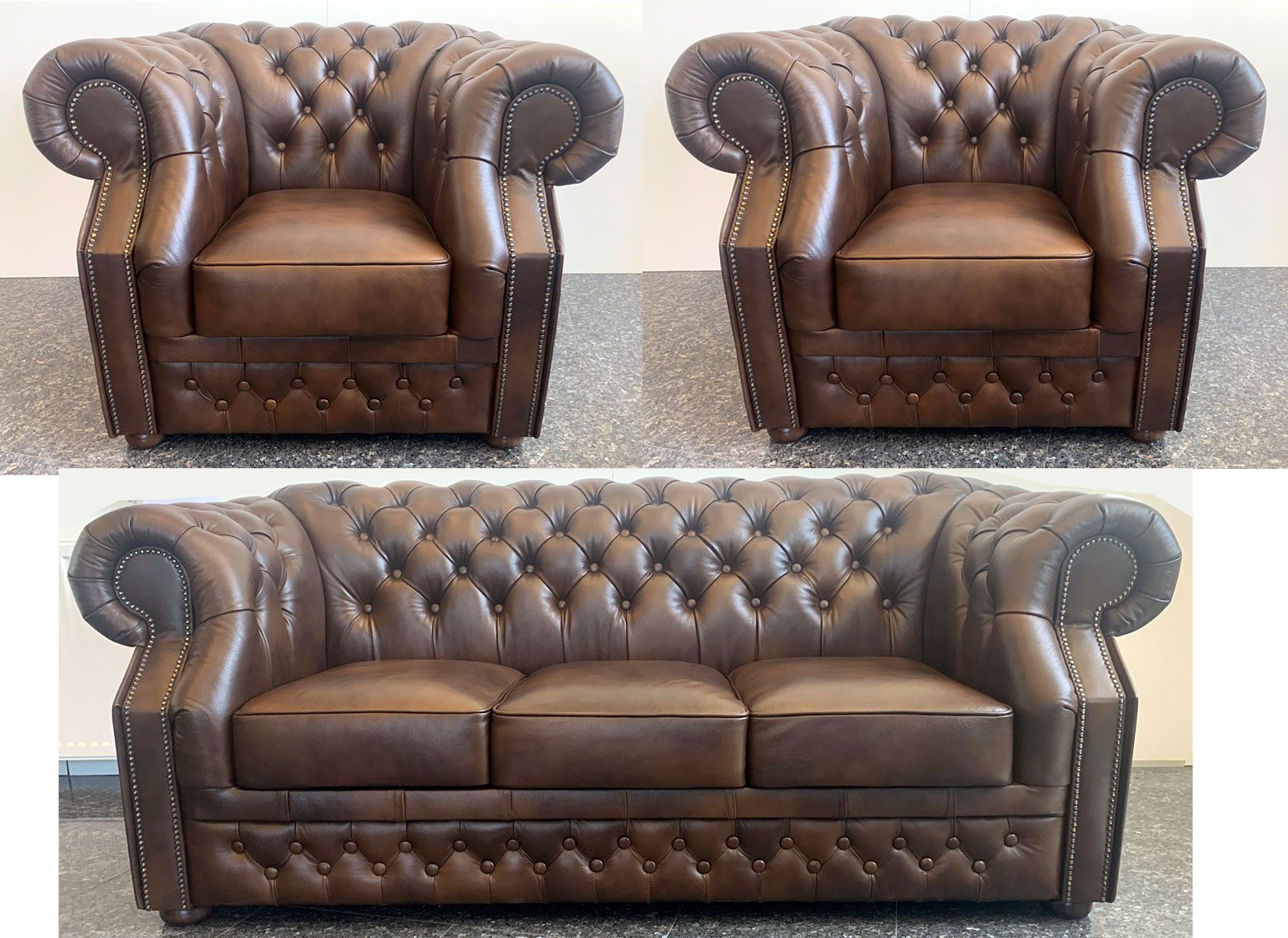 Windsor 311 Antik Mittelbraun Chesterfield Garnitur (A5)