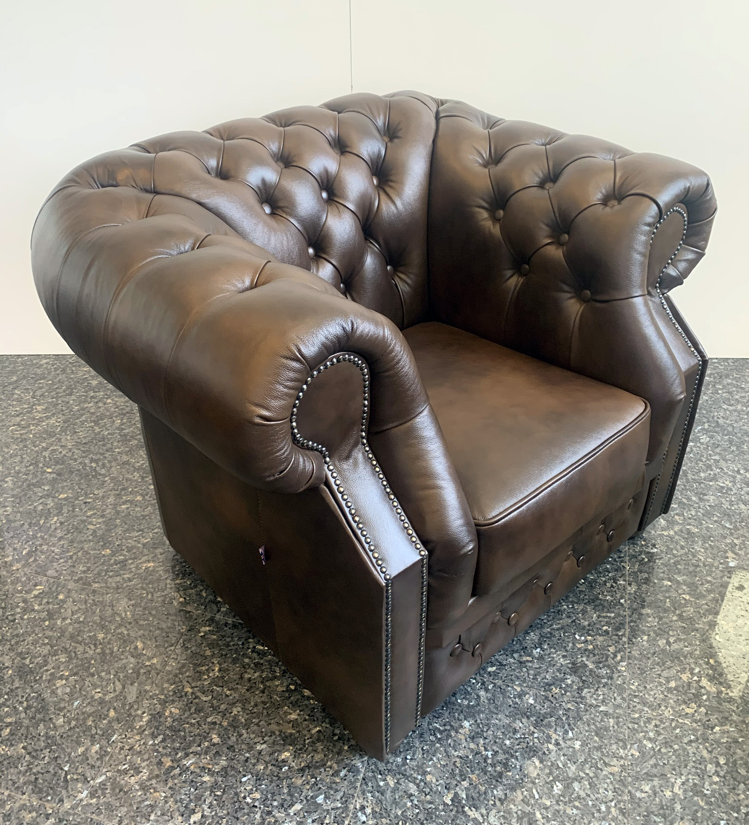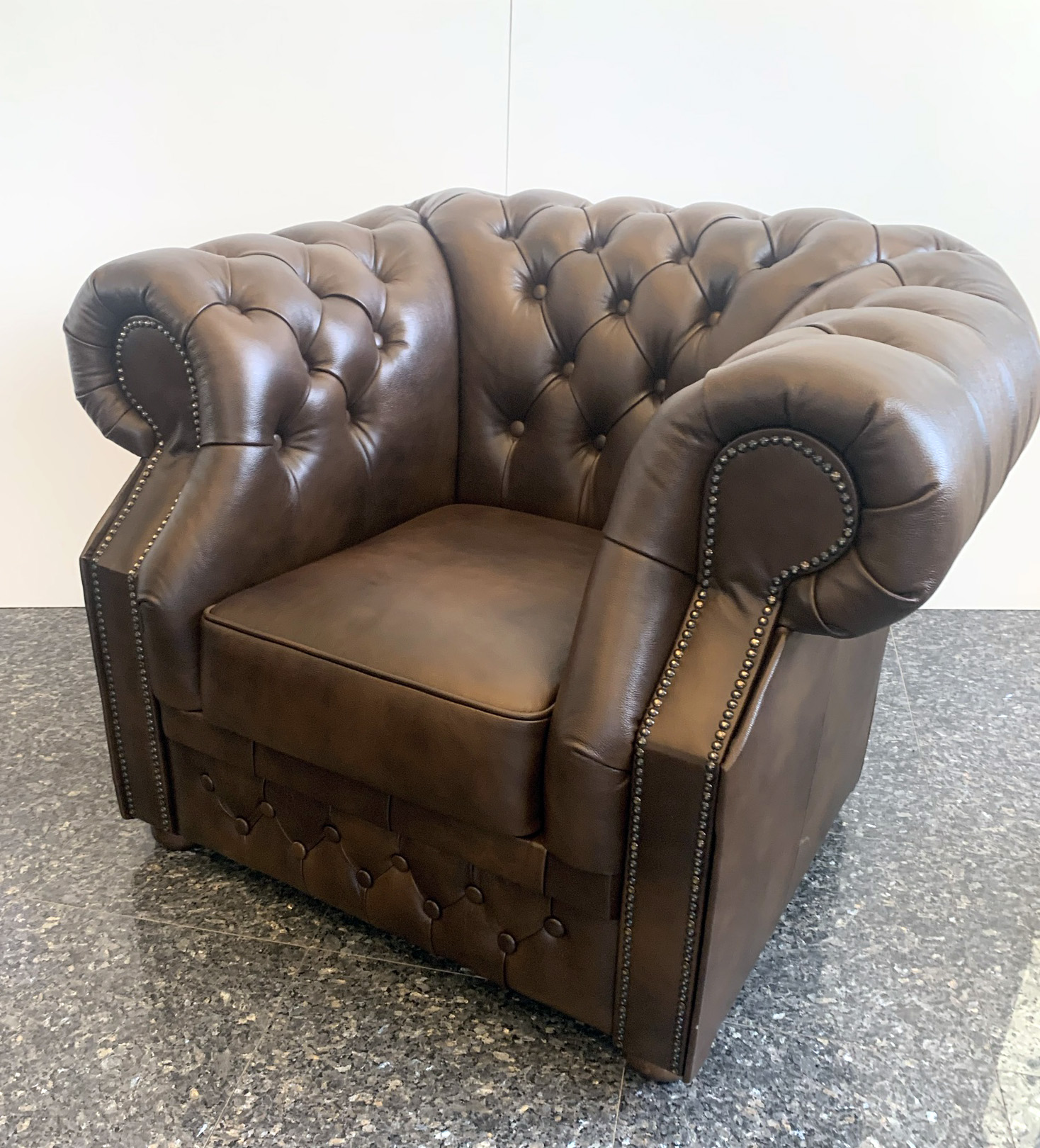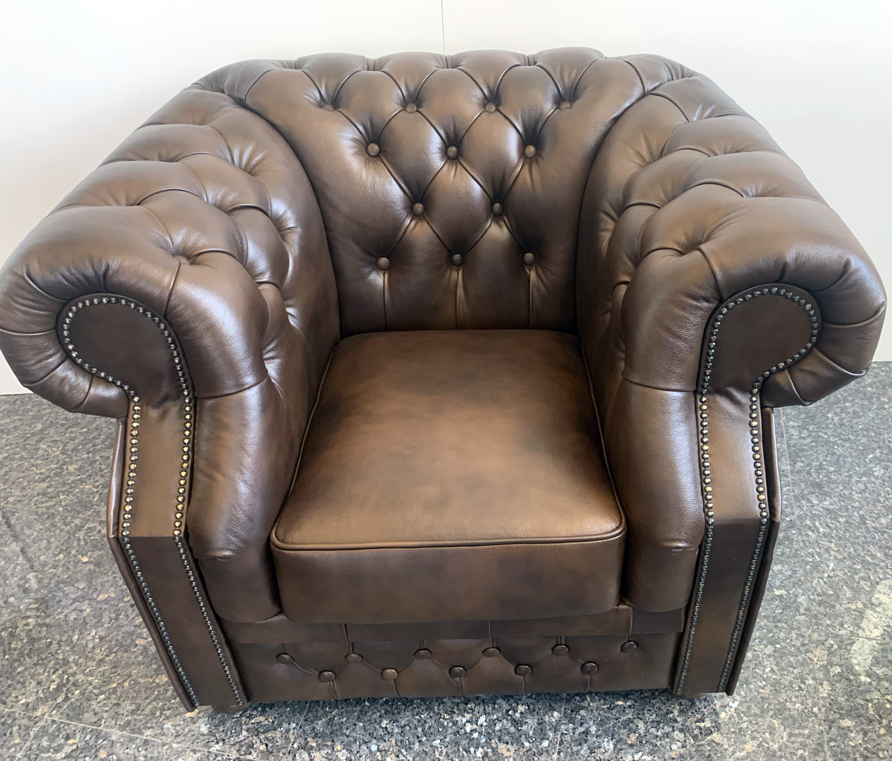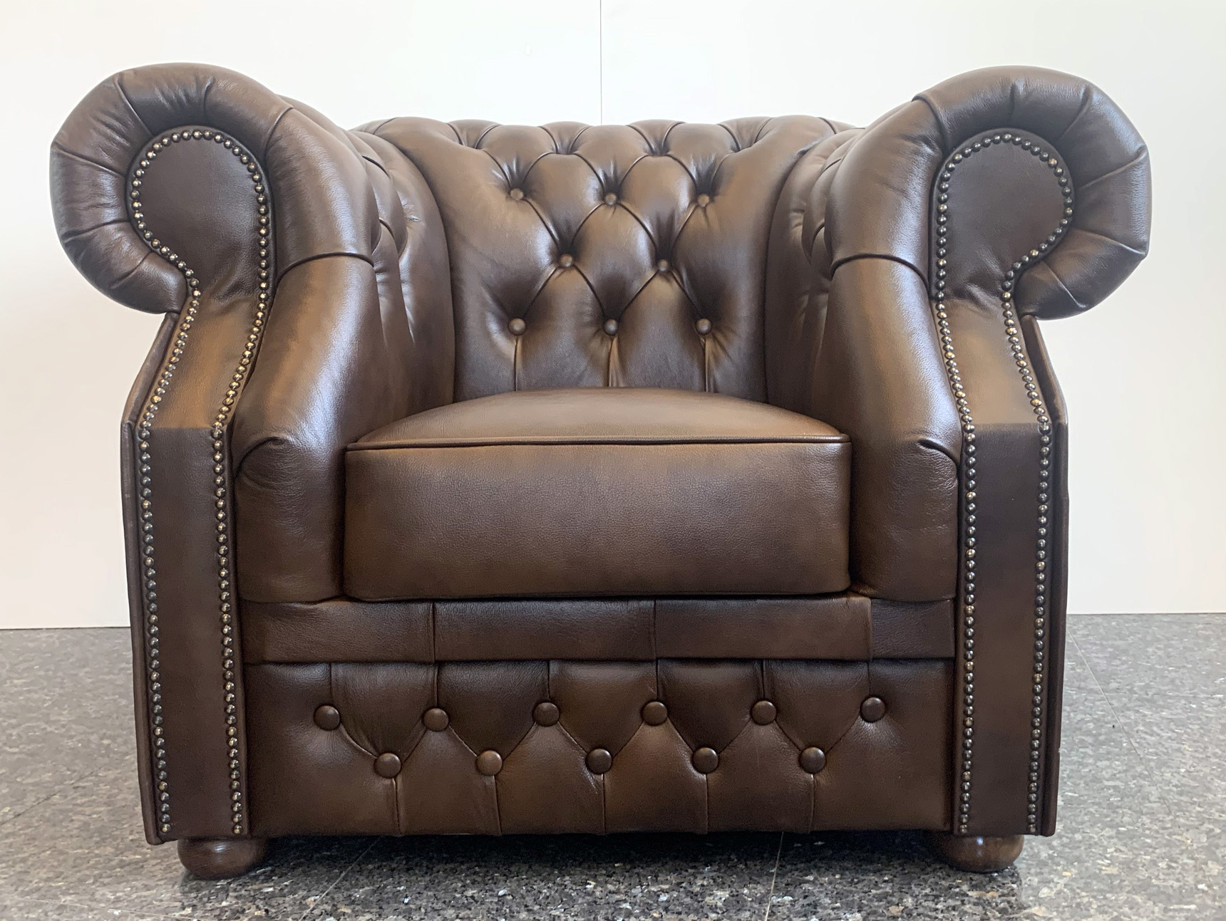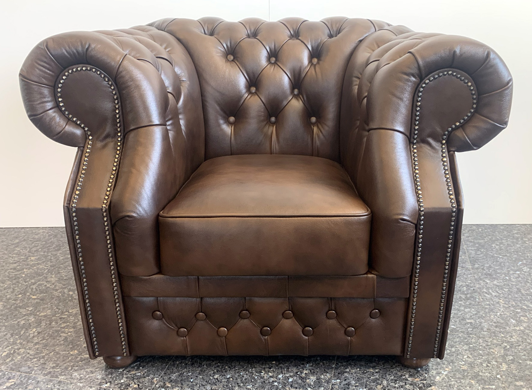 Chesterfield XL Windsor Ledersessel Antik mittelbraun (A5M)