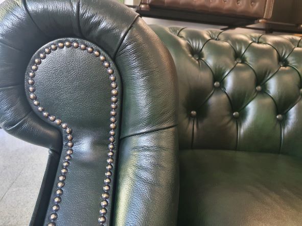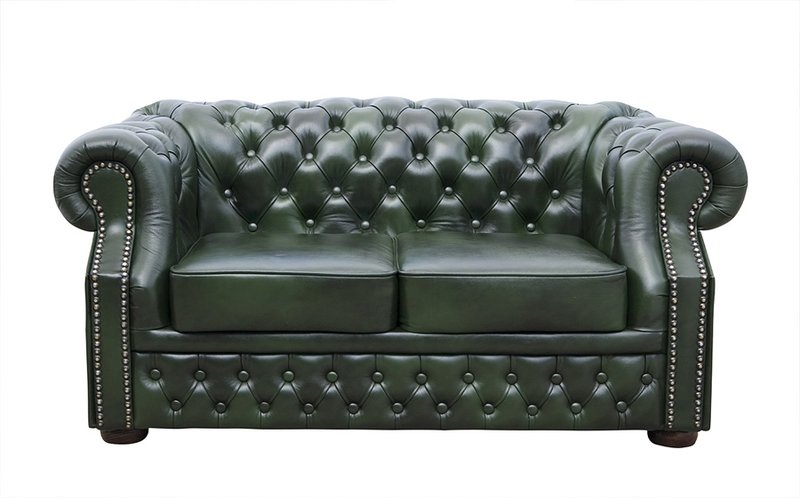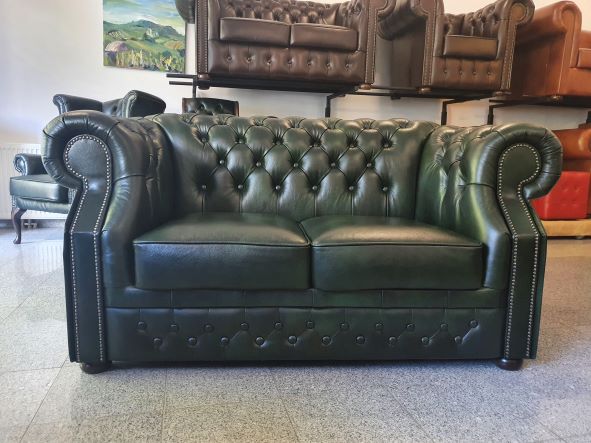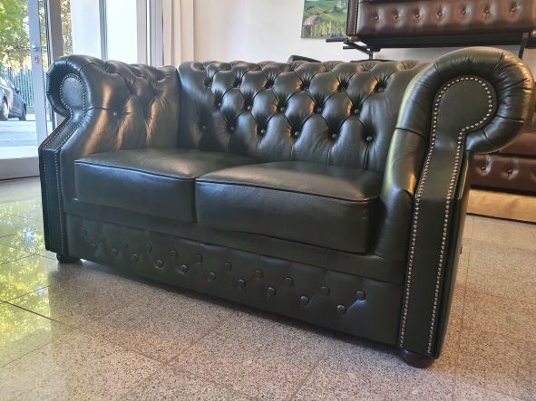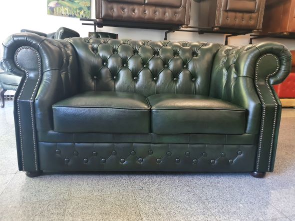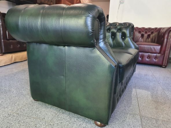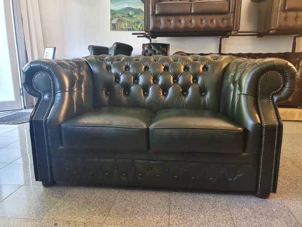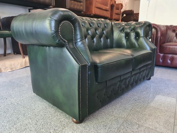 Chesterfield XL Windsor 2-Sitzer Ledersofa Antikgrün (A8)